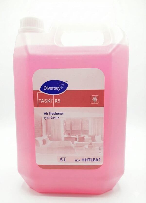 Taski R5 is a popular cleaning and hygiene product from the Diversey “Room Care” series. It is primarily a water-based air freshener designed to deodorize rooms and leave a pleasant, long-lasting floral fragrance.